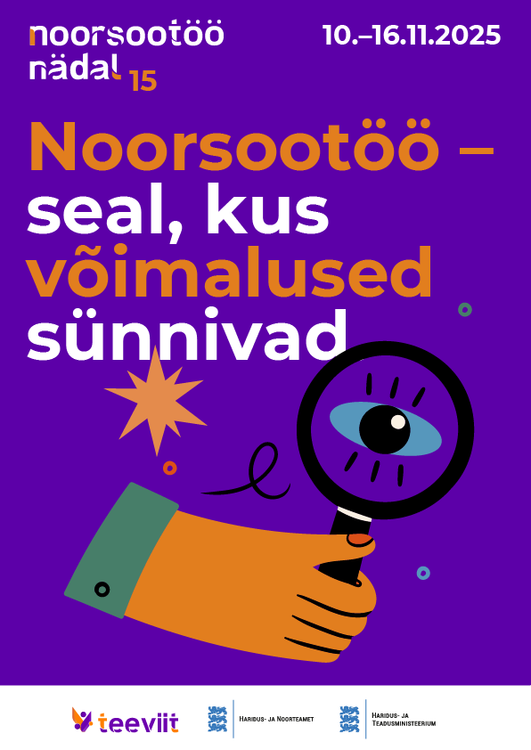 Üle-eestiline noorsootöö nädal “Seal, kus võimalused sünnivad” toimub 10.-16.11.2025. Tänavu on fookuses noorsootöö ning selle käigus omandatud kogemuste väärtustamine.
